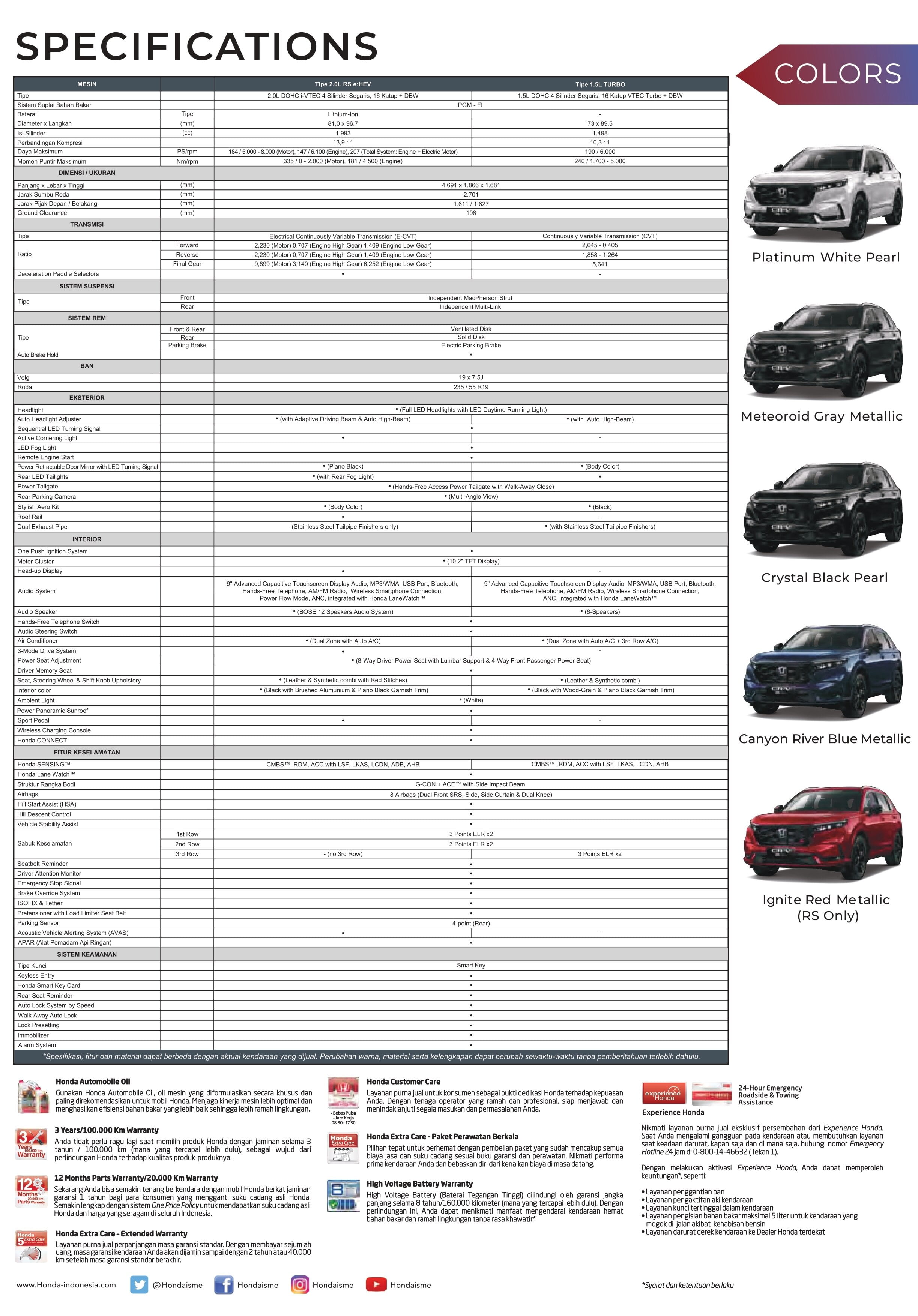 | All New Honda CRV 2025 1.5 Turbo | Rp. 759.000.000 |
