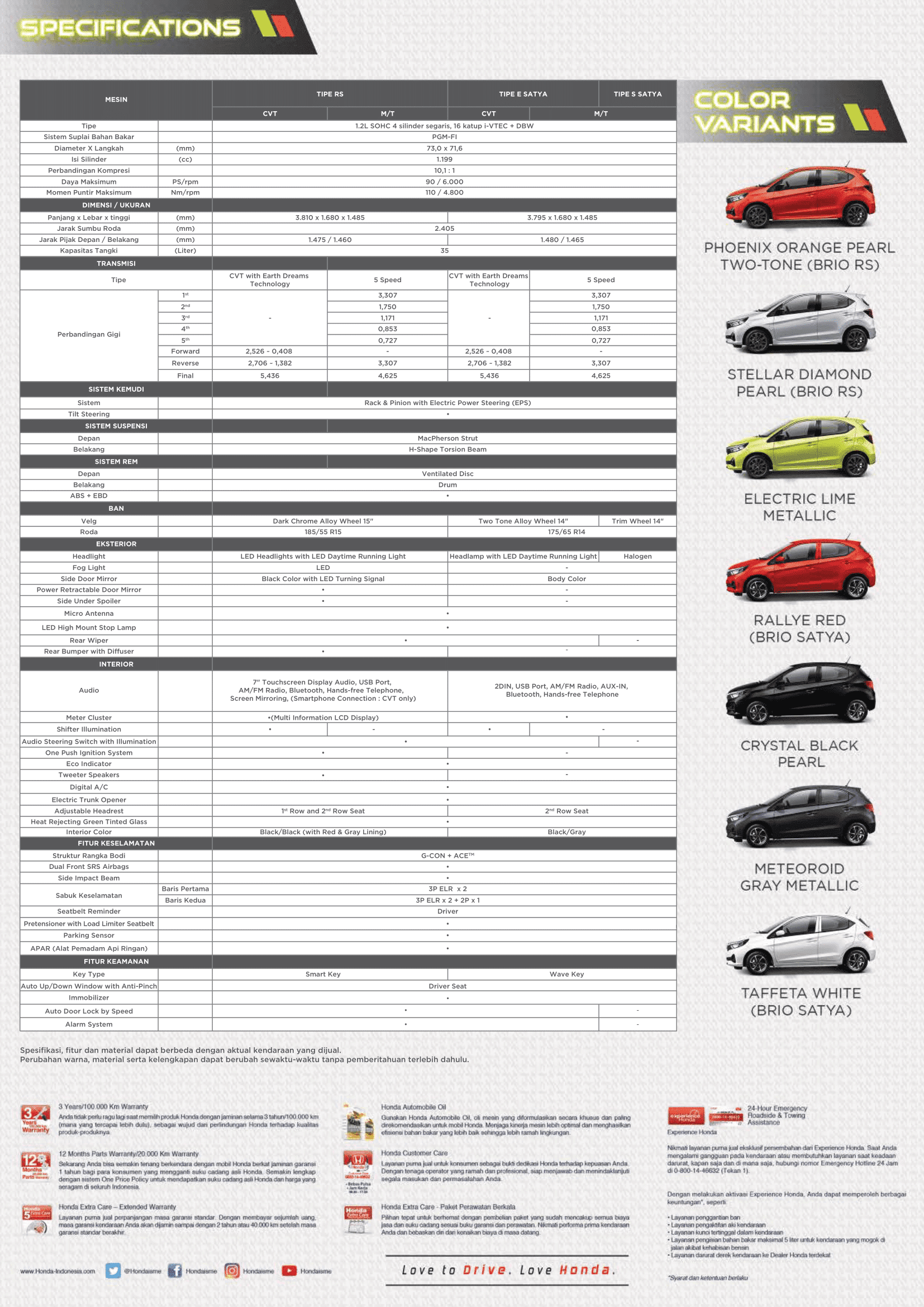 | NEW BRIO 2025 Satya E M/T | Rp. 185.500.000 |
