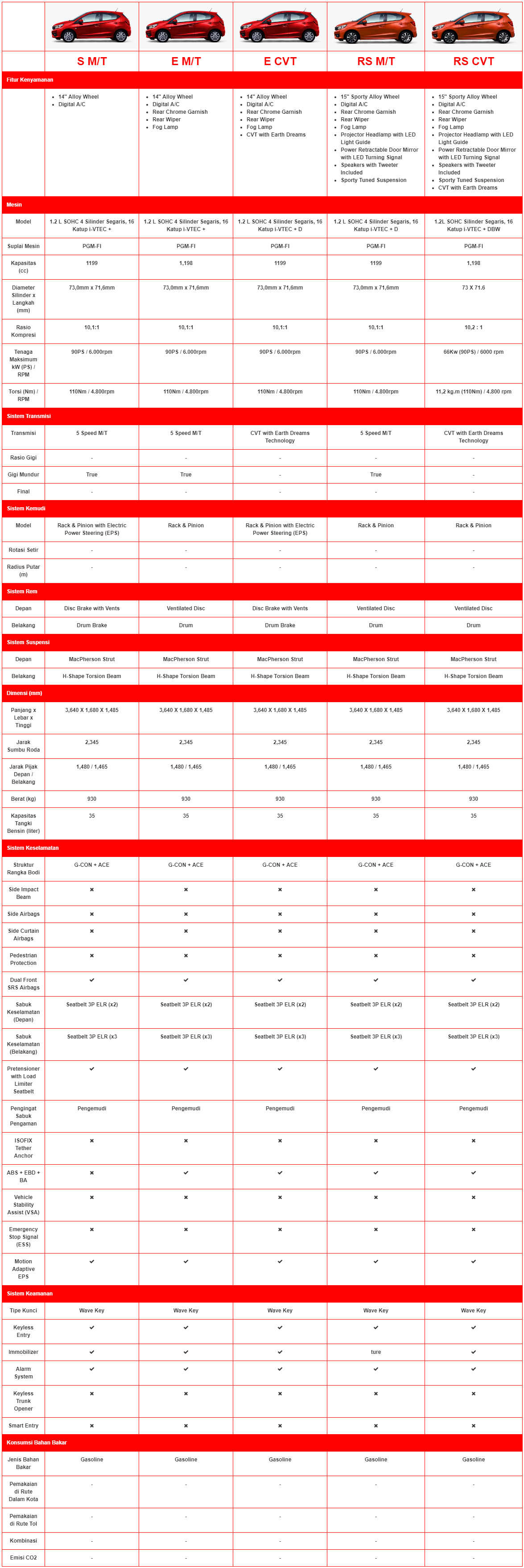 | NEW BRIO 2025 RS CVT | Rp. 258.200.000 |